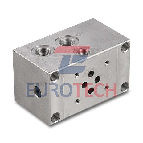 Одноместная монтажная плита. Под клапан CETOP3. Возможность установки картриджного предохранительного клапана и манометра. Материал - Алюминий.