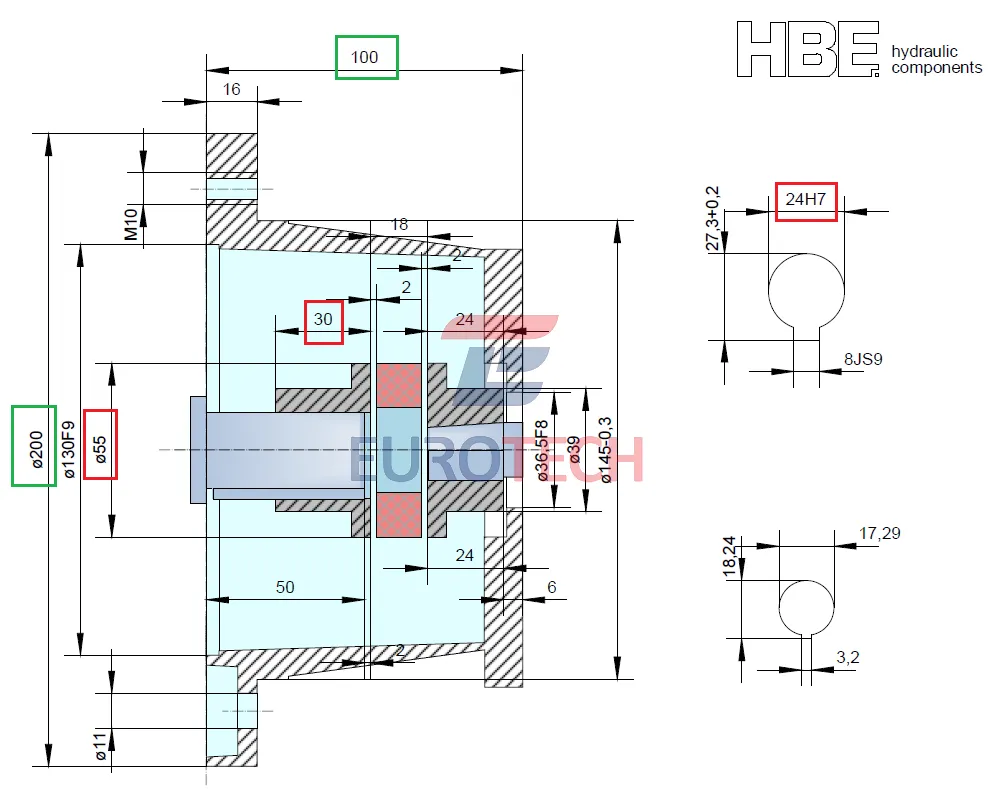 Алюминиевая полумуфта производства HBE, под конусный вал 1:8. HBE 24/30